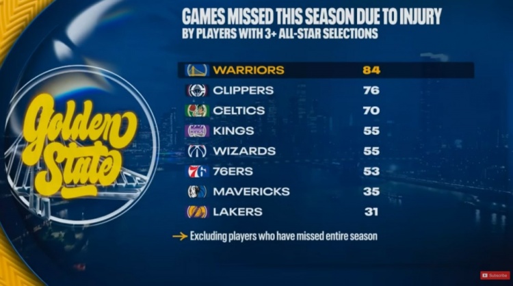 03月 17 2026 0 华体会直播公司-本赛季至少入选3次全明星球员因伤缺阵场次:勇士84场全联盟最多 xiaoqiao 2026-03-17 nba 51 备注:包括赛季报销球员1、勇士 84场2、快船 76场3、凯尔特人 70场4、国王 55场奇才 55场6、76人 53场7、独行侠 35场8、湖人 31场